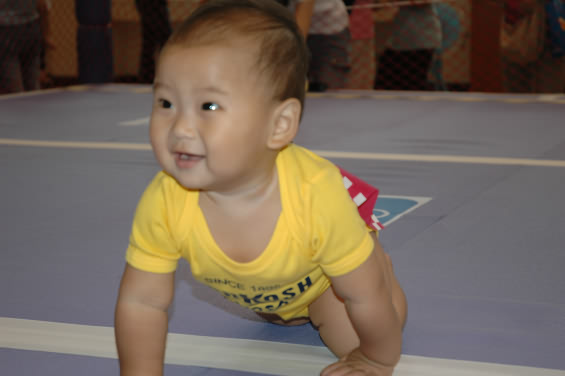 這可是恩恩第一次參加爬行比賽呢~~不過~~~恩恩只顧著看隔壁小朋友的爸爸媽媽~~所以~~當然沒得名了~~~