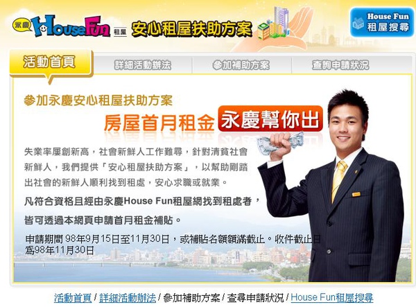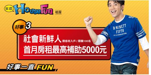 "永慶House Fun租屋網" 最近還推出了"社會新鮮人首月房租補助"~