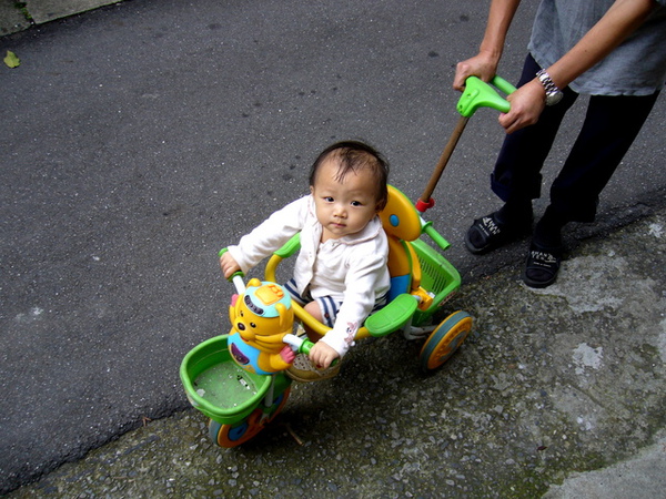 等一下....恩恩說~~呵呵~~我也要騎我的小腳踏車一起出發啦..