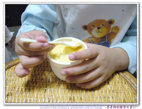 馨馨雖然不會講話~可是聽到大人說那是布丁就一直在旁邊等著要開來吃~~