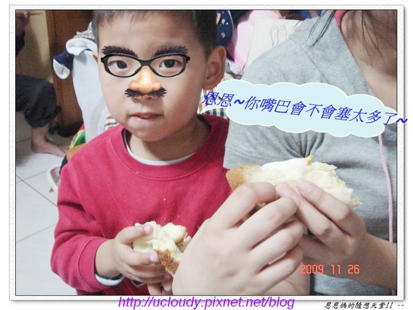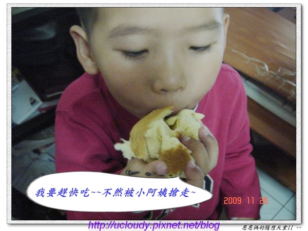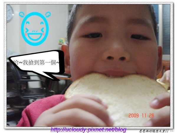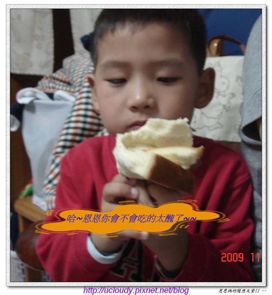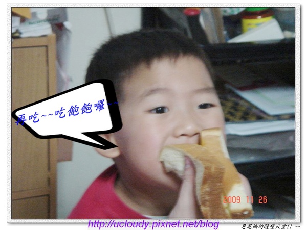 嗯~~美味的"湯種土司-頂級奶油風味"就在恩媽一家人的搶食下~