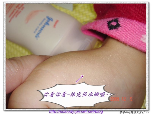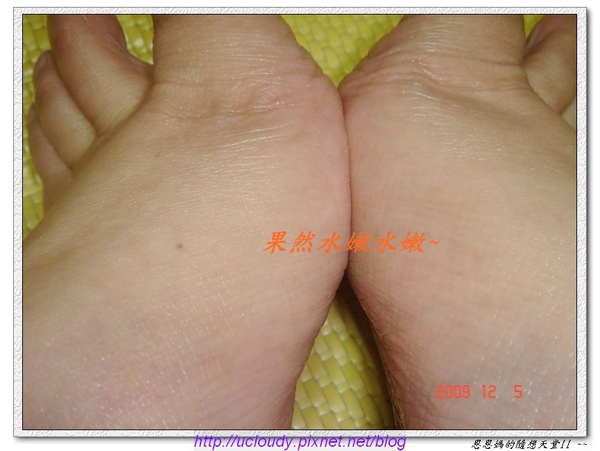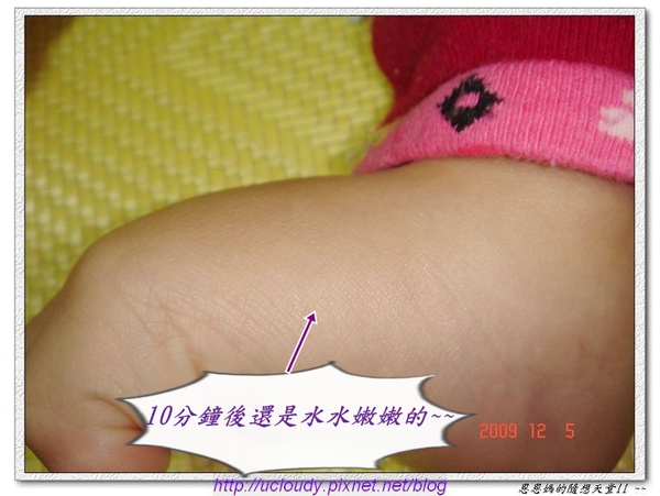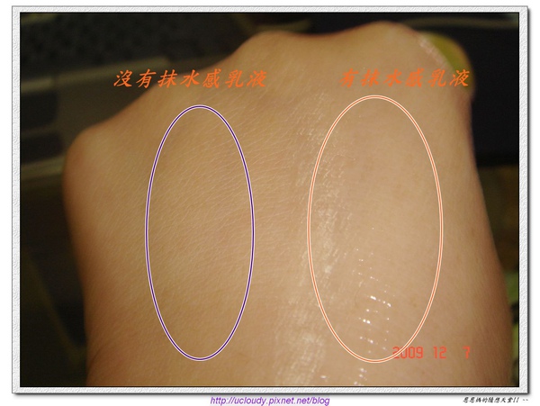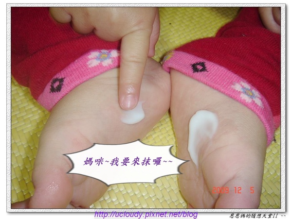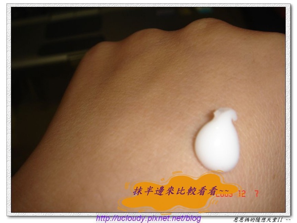 先抹在手上試試~(為了比較~恩媽特別只擦一半)