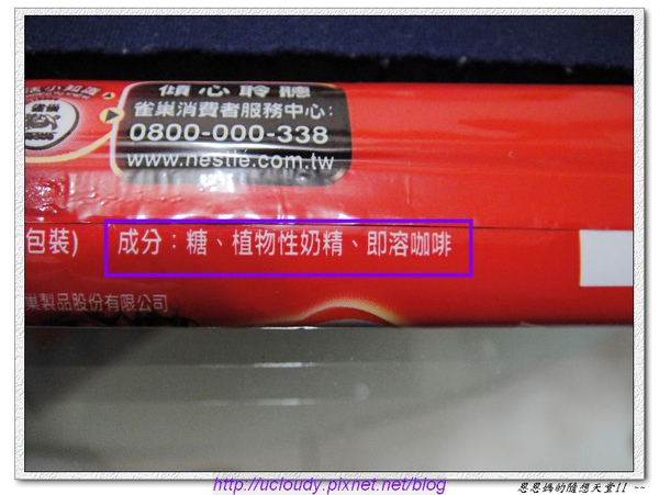 先來看看“NESCAFE三合一香滑原味”~~成份十分單純~~