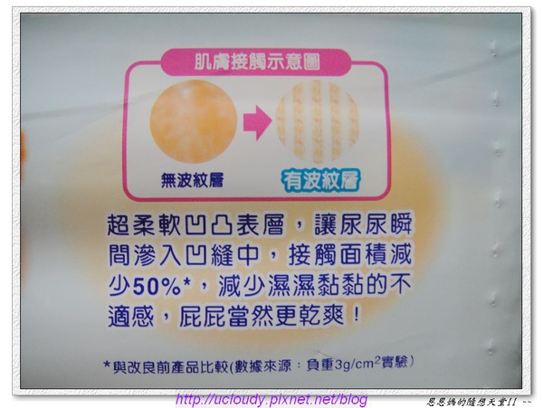 首先就是滿意寶寶新獨創的~”瞬潔波紋層”,能讓尿尿瞬間滲入凹縫中,