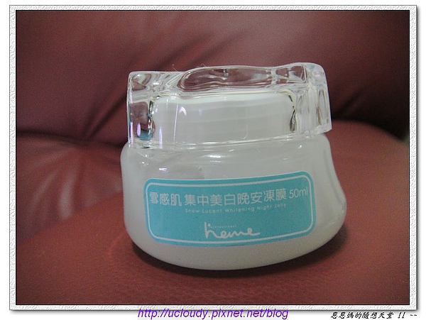本月的試用品是"Heme雪感肌集中美白晚安凍膜"