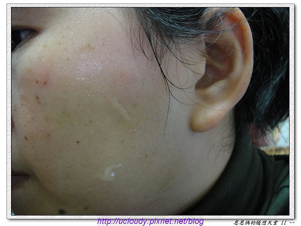 開始抹滿整臉囉~~恩媽發現它很特別~