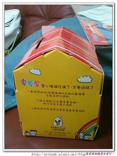 這個「麥麥屋愛心撲滿」是要幫助那些生病而且住很遠很遠的小朋友~